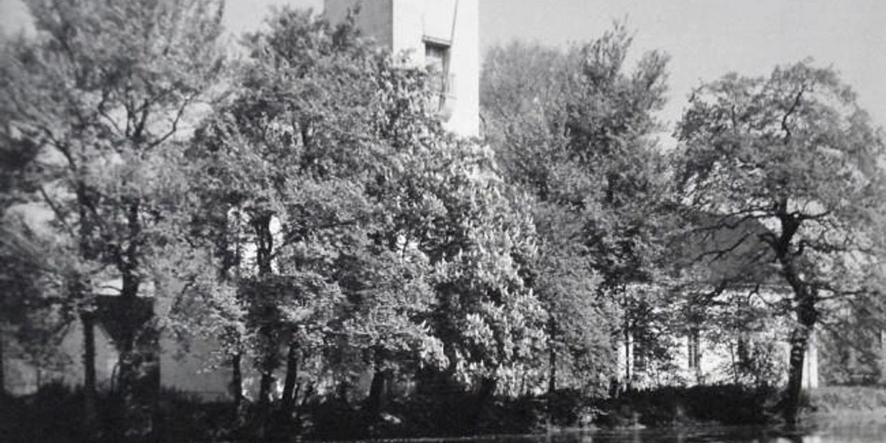 The trees and houses on the left in this photo were knocked down when Hampton Court Way was built in 1932.