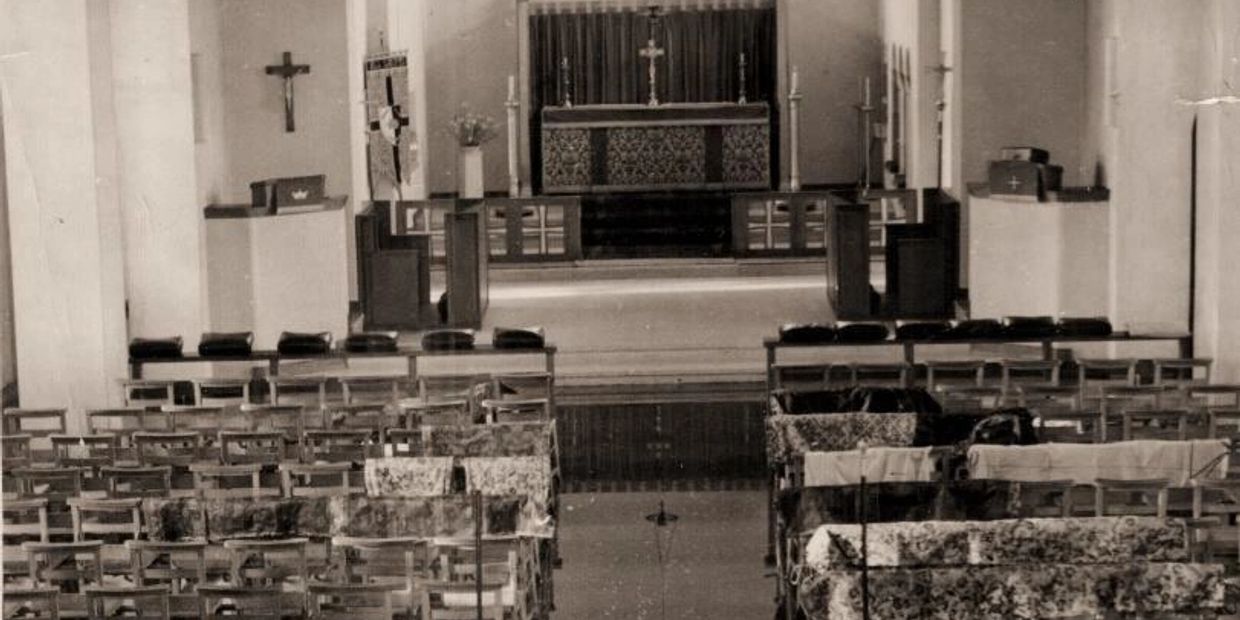 It was an act of faith to build the Church, as war broke out shortly afterwards, and there had been much “uncertainty and anxiousness” for some time. Many men and women from the parish went to join the forces and take part in other war time work, including the Vicar, Rev. Victor Edwards who became a Royal Navy Chaplain for 3 years. Some homes were destroyed by bombs, and the Church Hall (the old Church) was damaged, but fortunately the new Church was spared, though there had been concerns about its high visibility from the air.